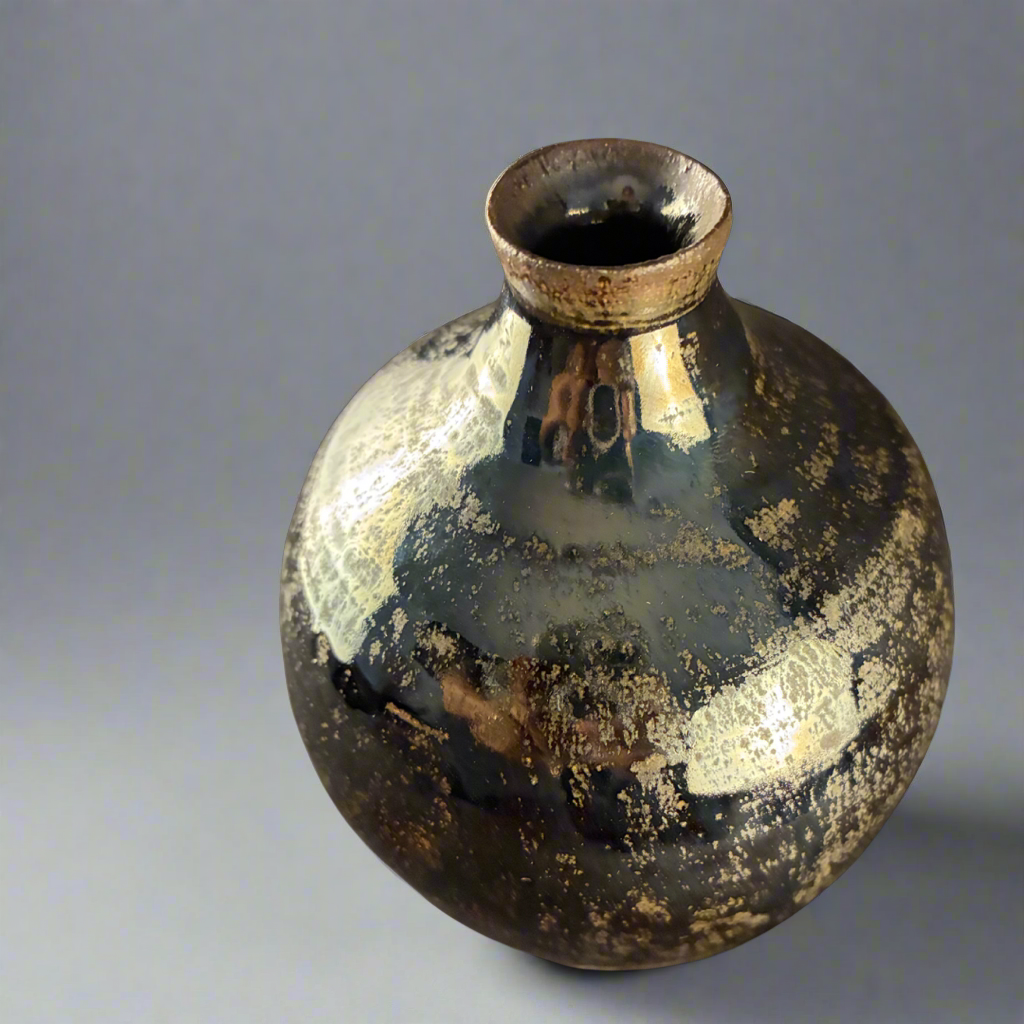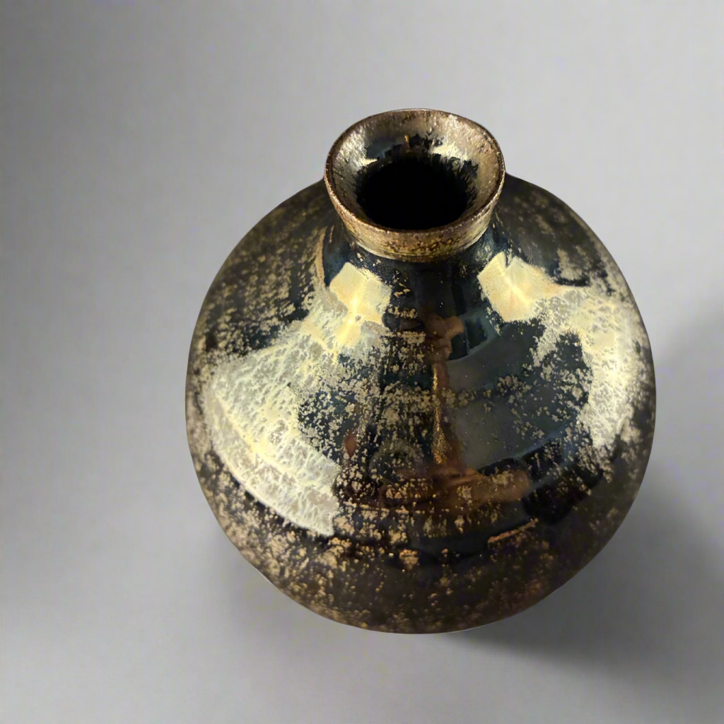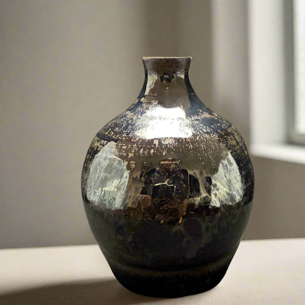 Stoneware wheel-thrown stoneware vase with Mirror Black glaze