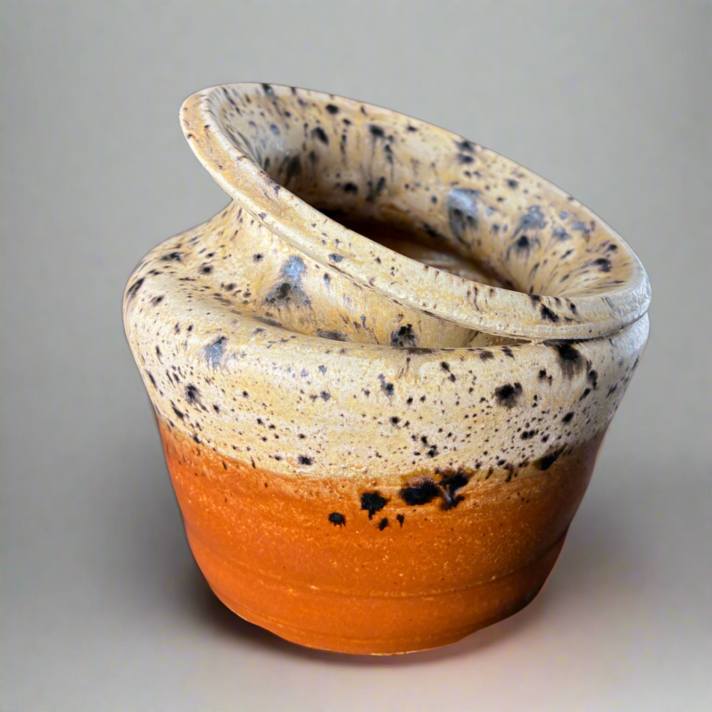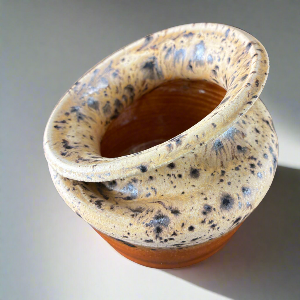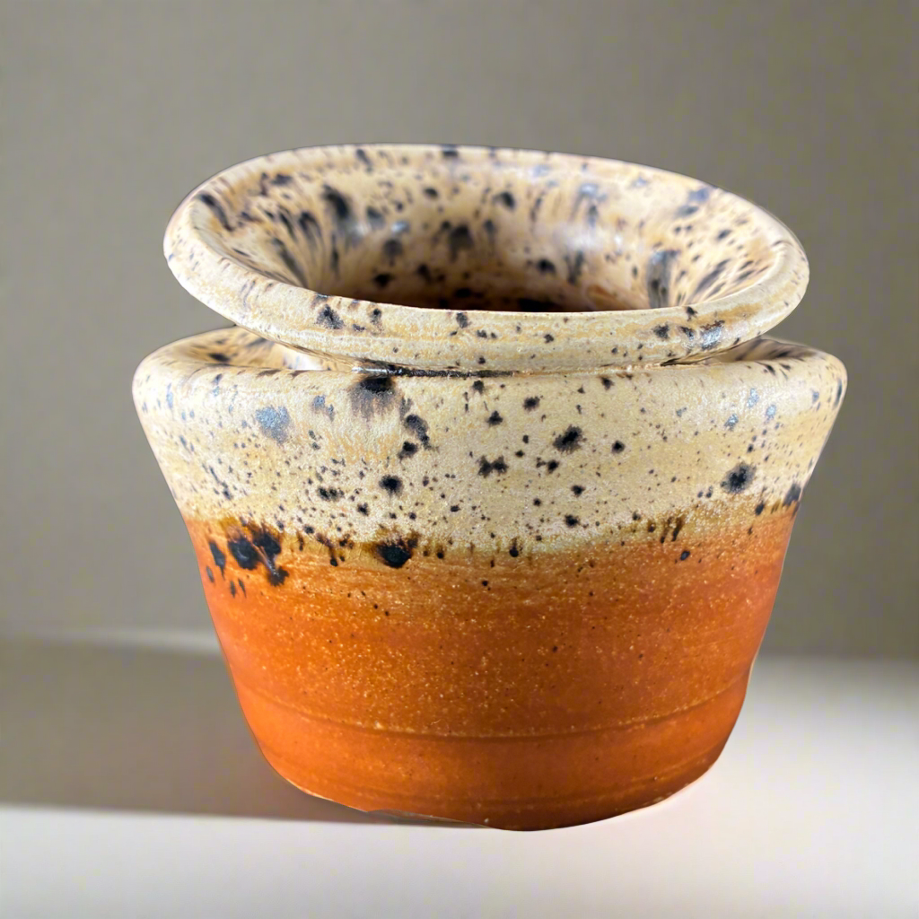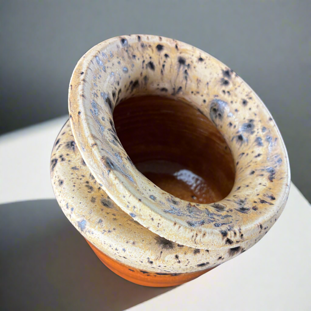 Collapsed form vessel with Winter Wood and milk chocolate glaze