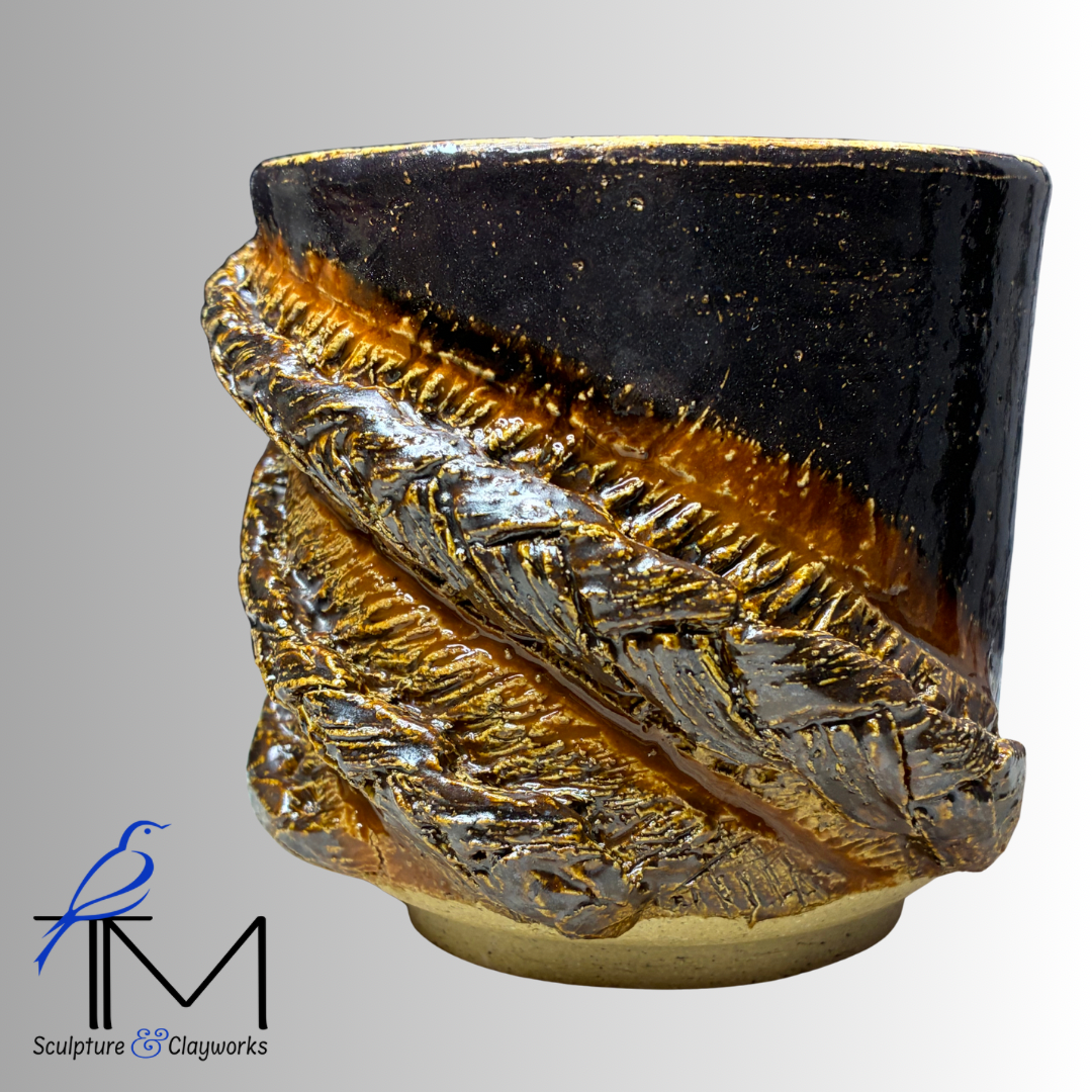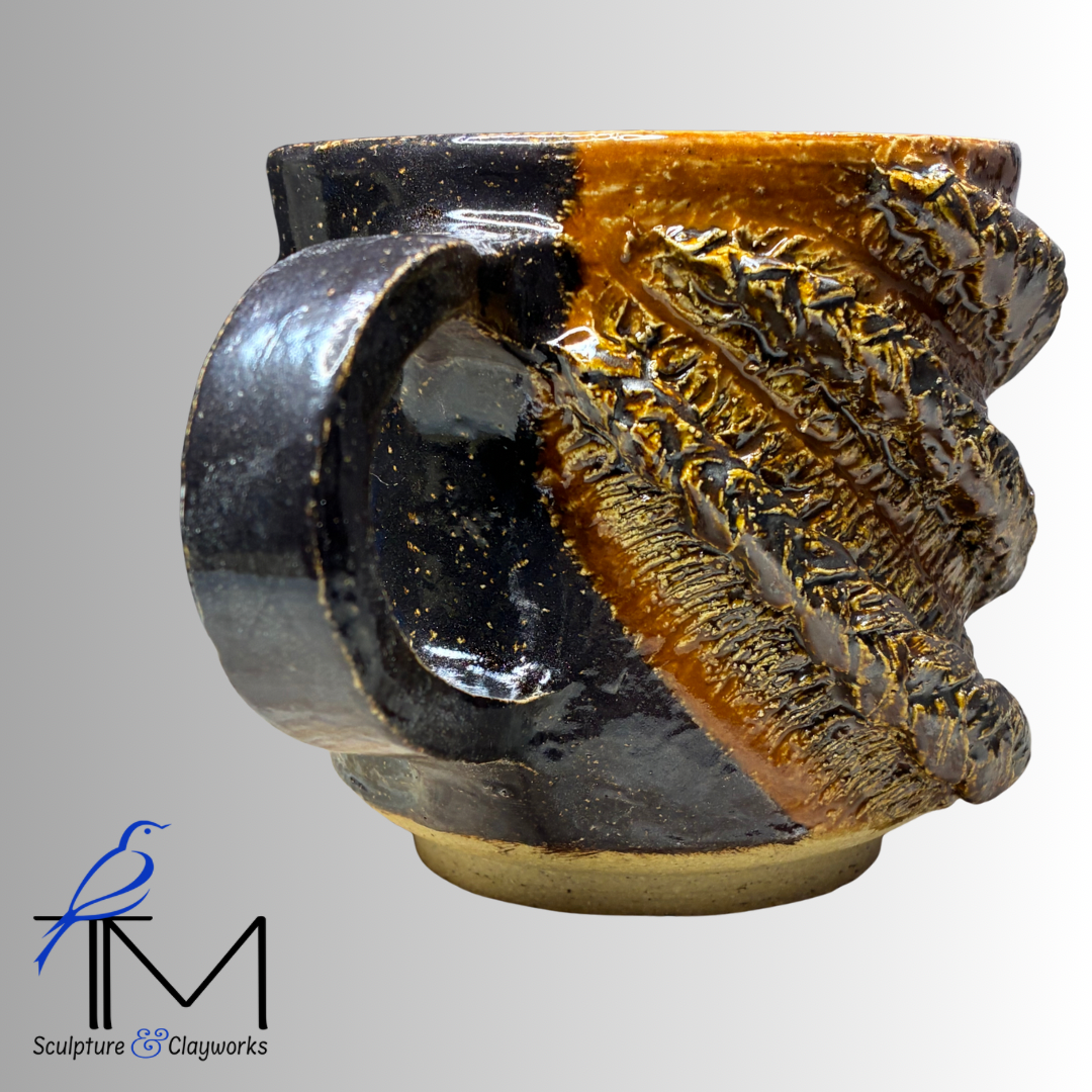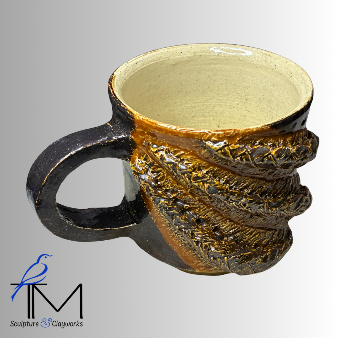 Uniquely sculpted cup celebrating the kinkiest, the coily-est, the coarsest and nappiest Black hair strands performing "art’s imitation of life" through three beautifully sculpted cornrows “braided” on an angle.
