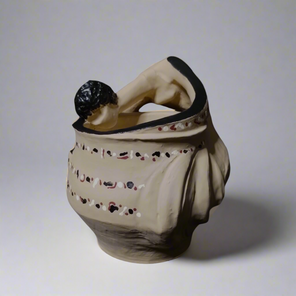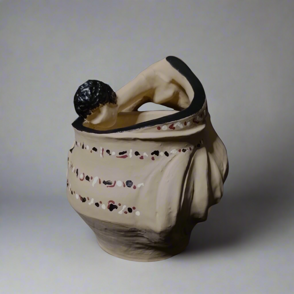 From the Vessel Goddess series - Sculpture paying tribute to what Black women gather and protect of the standards and traits that matter most to them.